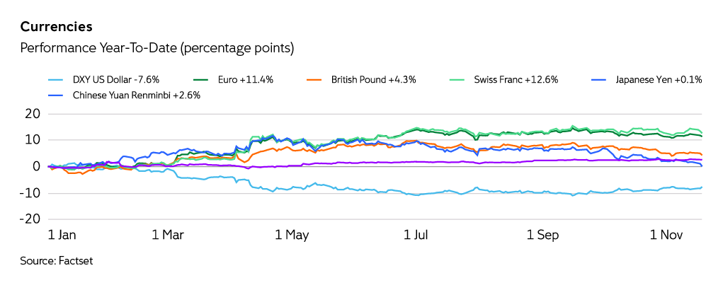 Bond market performance has been largely positive due to this normalisation. But inflation remains stickier than expected across many economies and US tariff uncertainty imposes additional upward pressure for 2026. At the same time, there are concerns over growing debt levels. Six of the G7 countries are expected to see debt-to-GDP exceed 100 percent in 2025, sharpening concerns around fiscal flexibility.
