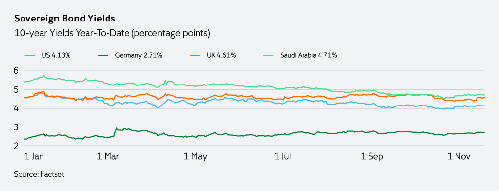 The tension between political expediency and monetary prudence is likely to intensify as debt levels remain elevated and the 2026 US midterms approach. These dynamics, however, should have limited impact on the GCC. According to the International Monetary Fund (IMF), GCC economies are expected to sustain solid growth with low inflation and strong current account and external financial positions over the next five years. The region’s substantial sovereign wealth funds provide an additional buffer against fiscal stress, though the World Bank notes that downward pressure on oil prices will weigh on government revenues, increasing fiscal strains in Kuwait, Oman and the UAE.